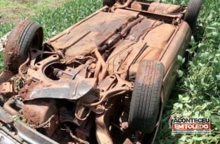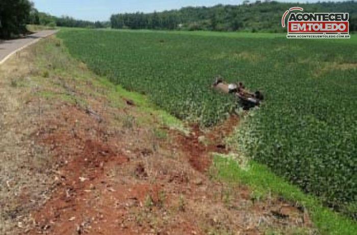O carro ficou destruído e parou em meio a uma lavoura de soja. Apesar dos grandes danos no carro, o condutor que é morador de Toledo, saiu ileso do acidente.