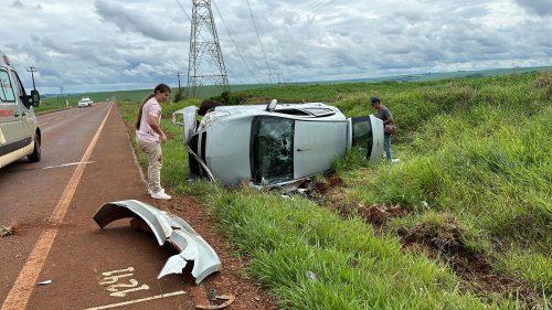 Segundo as informações, a colisão inicial envolveu o Fiat Argo contra o Agile. Com o impacto, o Chevrolet capotou por aproximadamente 50 metros, parando tombado no acostamento.