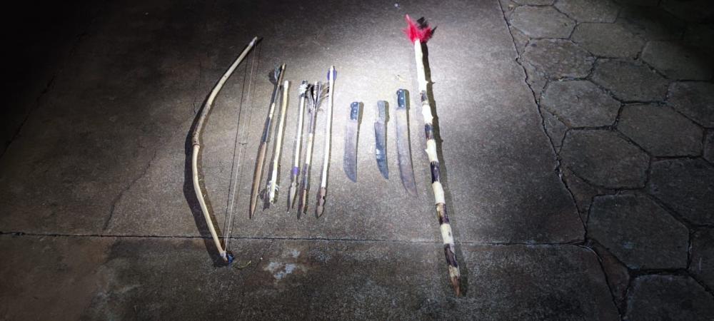 Armas utilizadas pelos indígenas, incluindo um arco e flecha, três facões e uma lança adornada, foram recolhidas pelas autoridades. Todo o material, juntamente com as flechas disparadas contra os policiais, foram entregues à Delegacia de Polícia Federal de Guaíra.