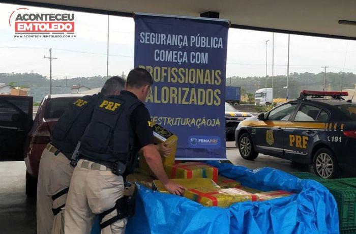Dentro do carro, havia fardos da droga no banco dianteiro e traseiro. Debaixo da lona que cobria a carretinha, os policiais descobriram mais fardos, somando 28 pacotes que totalizaram 506,5 quilos.