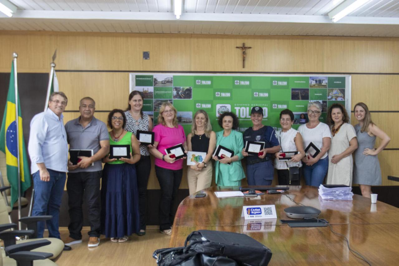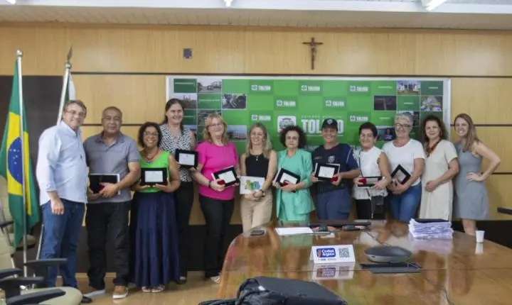 Os servidores receberam uma placa de homenagem e um exemplar do livro comemorativo dos 70 anos de Toledo. Para marcar este momento comemorativo, também receberam uma salva de palmas dos colegas, familiares e demais servidores presentes.