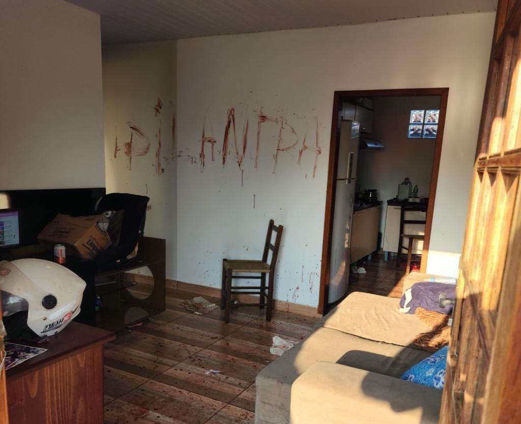 Neste momento, a vítima, conseguiu sair por outra porta lateral, a mulher estava machucada, coberta por sangue, e com hematomas pelo corpo, sendo então atendida pelo SAMU, esta equipe, ao adentrar a residência, se deparou com um cenário de “filme de terror”, pois, o imóvel estava totalmente coberto de sangue, sangue no chão e paredes com escritas como “PILANTRA”, feitas pelo agressor com o sangue da vítima.