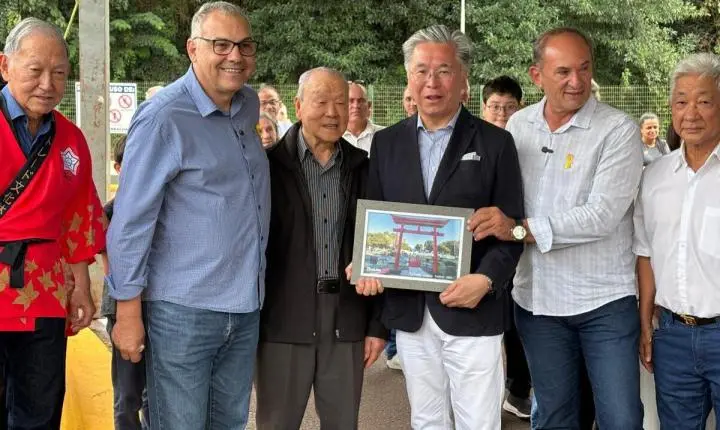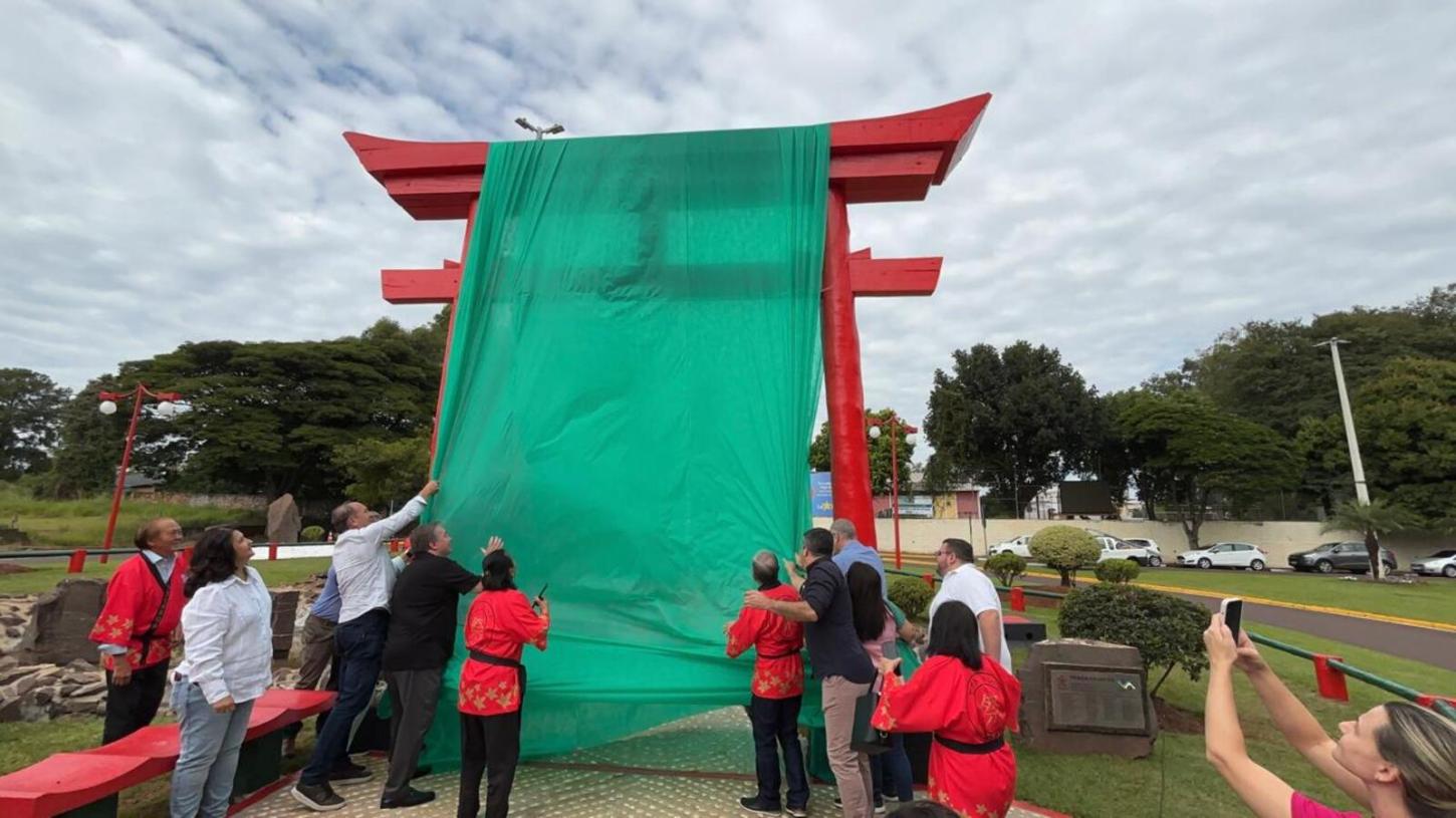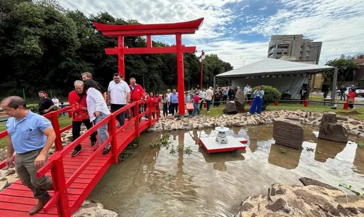 Foi inaugurada, neste sábado (3), a revitalização da Praça do Japão em Toledo. O ato foi uma homenagem a colônia japonesa de Toledo, e contou com a presença do cônsul do Japão no Brasil, Mitsui Yasuhiro. O principal símbolo japonês que a praça recebeu foi o portão Torii, além de cascata, roda d’água, ponte, lago com carpas, além de outros detalhes. A obra foi executada pela Secretaria de Infraestrutura Rural e Urbana e de Serviços Públicos da Prefeitura de Toledo.