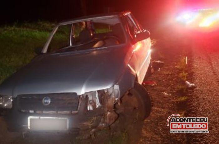 O acidente foi registrado na região do Lago Azul, onde um homem de 58 anos perdeu o controle da direção de um Fiat Uno com placas de Corbélia, saiu da pista e capotou o veículo.