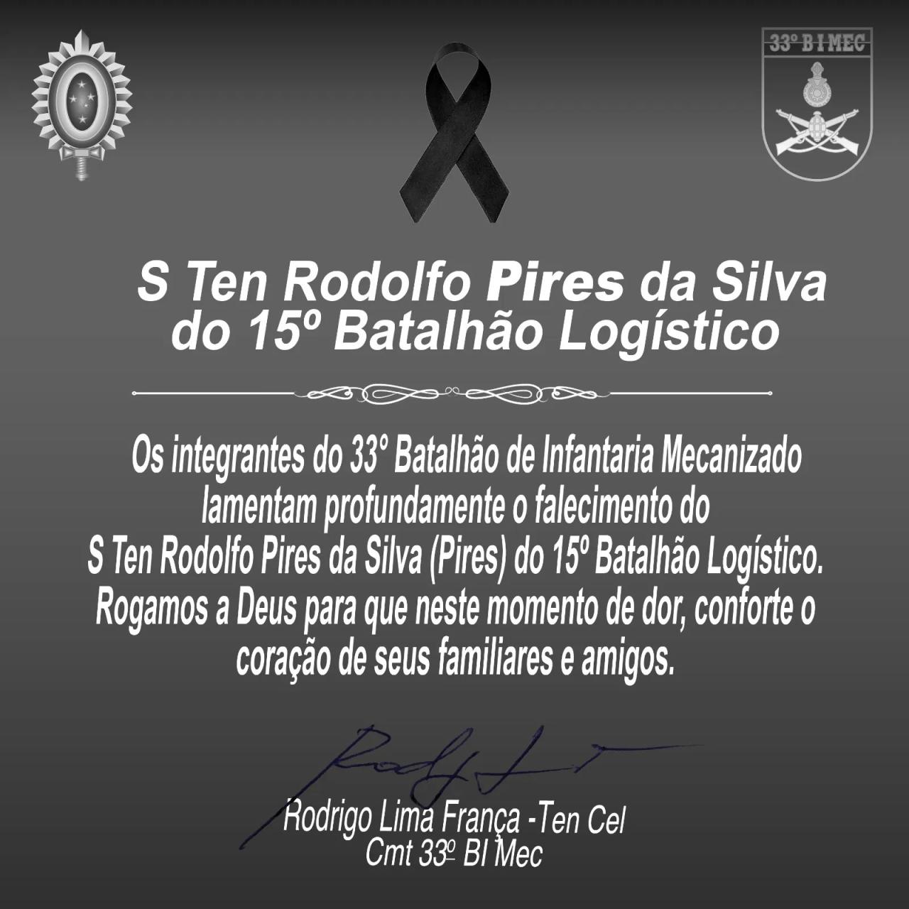 O 33º Batalhão de Infantaria Mecânizada emitiu uma nota de pesar quanto a morte de Rodolfo: